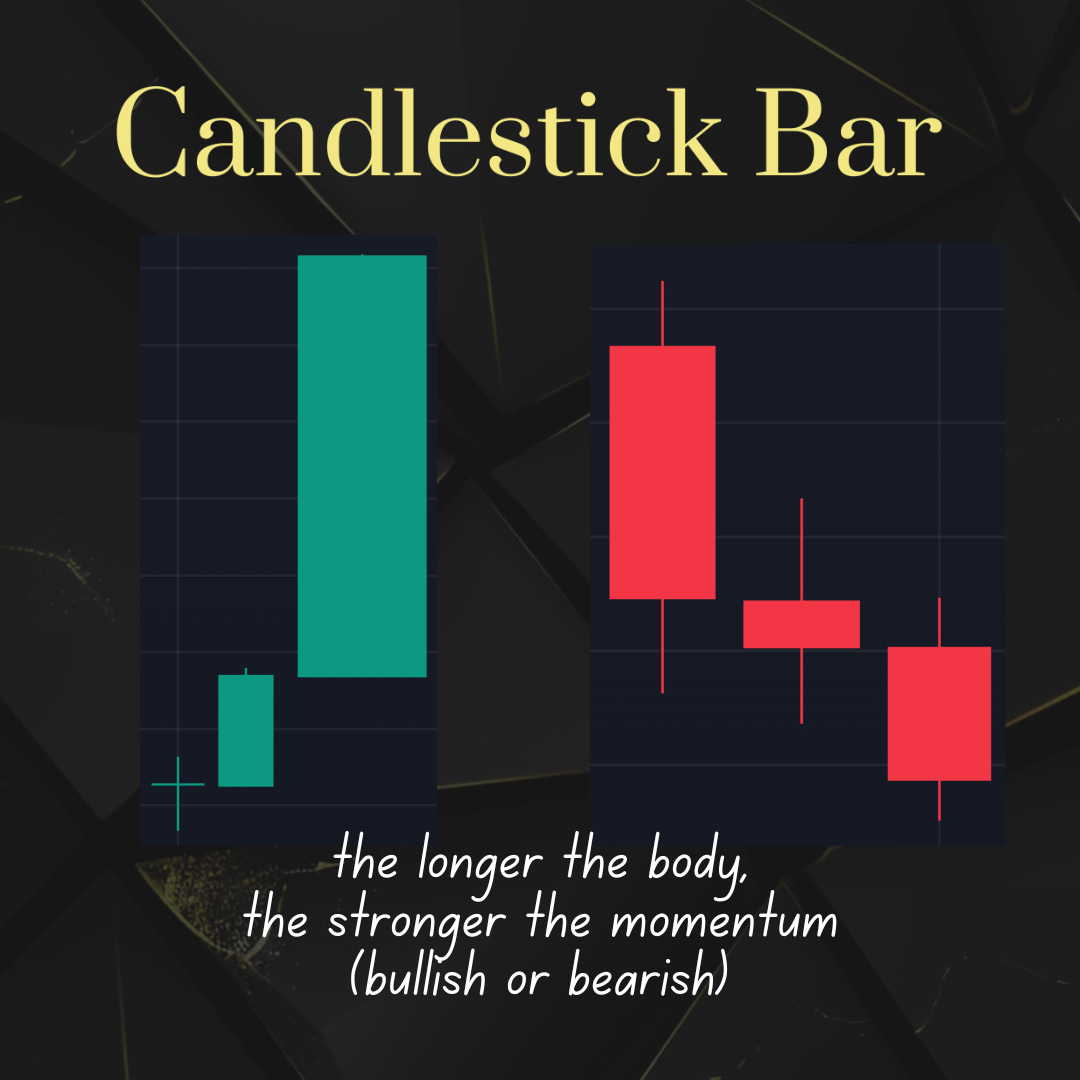 Closing price > opening price = green body. The longer the green body, the more bullish it is.